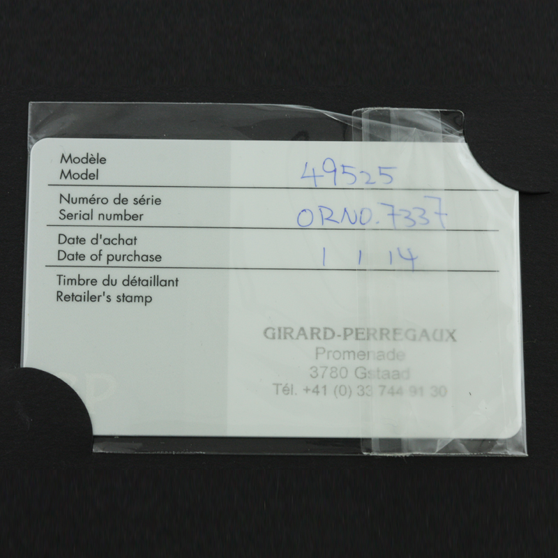 Girard Perregaux aangekocht in Zwitserland in 2014, het horloge heeft eigenlijk nooit de doos verlaten. De plastics zitten nog op het horloge; het is letterlijk nooit gedragen.